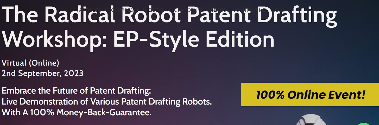 Coming up: The Radical Robot Patent Drafting Workshop