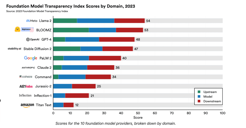 Notably, GPT-4, which powers ChatGPT’s paid version, and Google’s PaLM 2 both received identical transparency scores, securing the third-highest ranking at 40 percent.